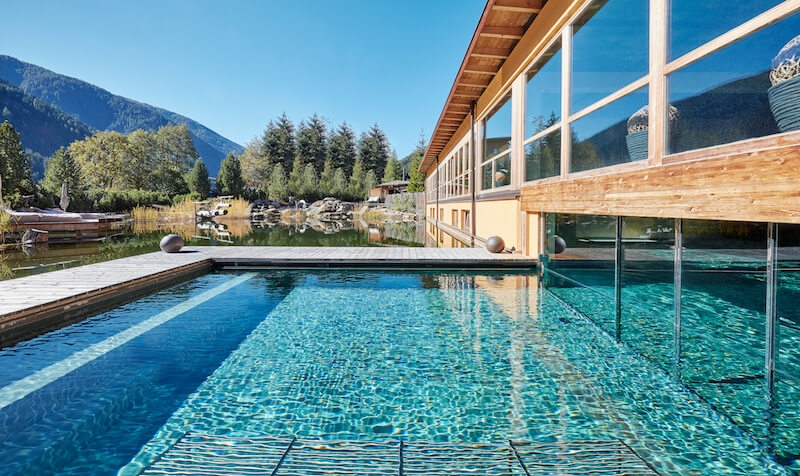The location itself is luxury: “In the middle of the outside” Naturhotel Outside calls its setting in the heart of the East Tyrolean Alps. It’s not only the ideal accommodation for hiking fans, but also for spa fans looking for that certain something: rock crystal salt grotto, glacier peeling, own natural cosmetics line and the natural bathing pond reflecting the mountains’ summits. Divine! In your room, you can also experience the outside indoors, because the stylish furnishings are characterized by regional materials and local charm.